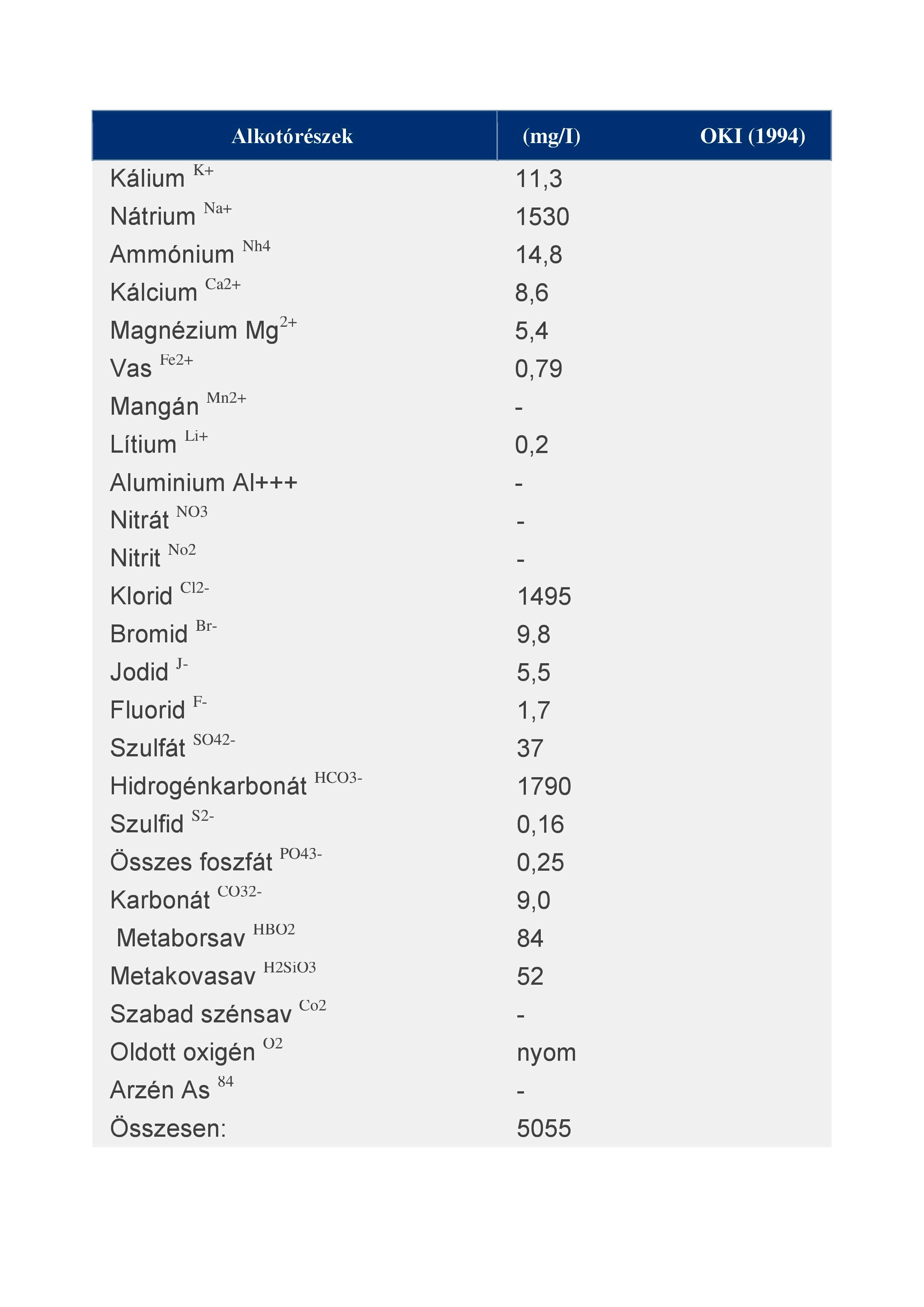 más, mint trias-kori tengerek felidézett szelleme. Konyhasótartalmánál fogva körülbelül ötszörösen hígított tengervíznek tekinthető, de a tengervíztől eltér csekély magnézium, calcium és jelentékeny hydrocarbonat tartalmánál fogva. Ennek dacára éppoly joggal használható úgy a gyógyításra, üdülésre, mint bármely más olyan tengeri fürdő, mely vizének hígítottságánál fogva hasonló töménységű.”